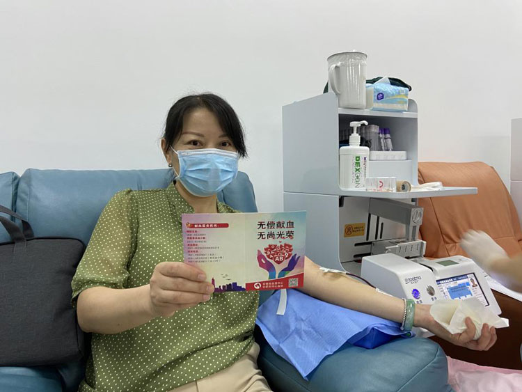 這是陶梅同志第二次參加無(wú)償獻(xiàn)血活動(dòng),今天她又用200毫升的熱血和樸素的愛(ài)心詮釋了“奉獻(xiàn)、友愛(ài)、互助、進(jìn)步”的志愿精神,用實(shí)際行動(dòng)踐行了黨員初心和使命。獻(xiàn)血結(jié)束后,工作人員為其發(fā)放獻(xiàn)血證和獻(xiàn)血紀(jì)念品,當(dāng)?shù)弥彰吠臼莵?lái)自城改集團(tuán)的國(guó)有企業(yè)職工,而且是一名共產(chǎn)黨員時(shí),血站工作人員對(duì)陶梅同志的義舉無(wú)不表示出極高的贊揚(yáng),“一滴血,一份愛(ài);一袋血,一片情!感謝陶梅同志的無(wú)私奉獻(xiàn)精神!每到夏天,我們的血液庫(kù)存都會(huì)緊張,在此,我希望更多的人能夠參加到無(wú)償獻(xiàn)血活動(dòng)中來(lái),讓我們把滴滴血液匯聚成川流不息的生命長(zhǎng)河,讓更多有需要的人得到生命的延續(xù),進(jìn)而為建設(shè)平安健康的合肥貢獻(xiàn)自己的力量。”